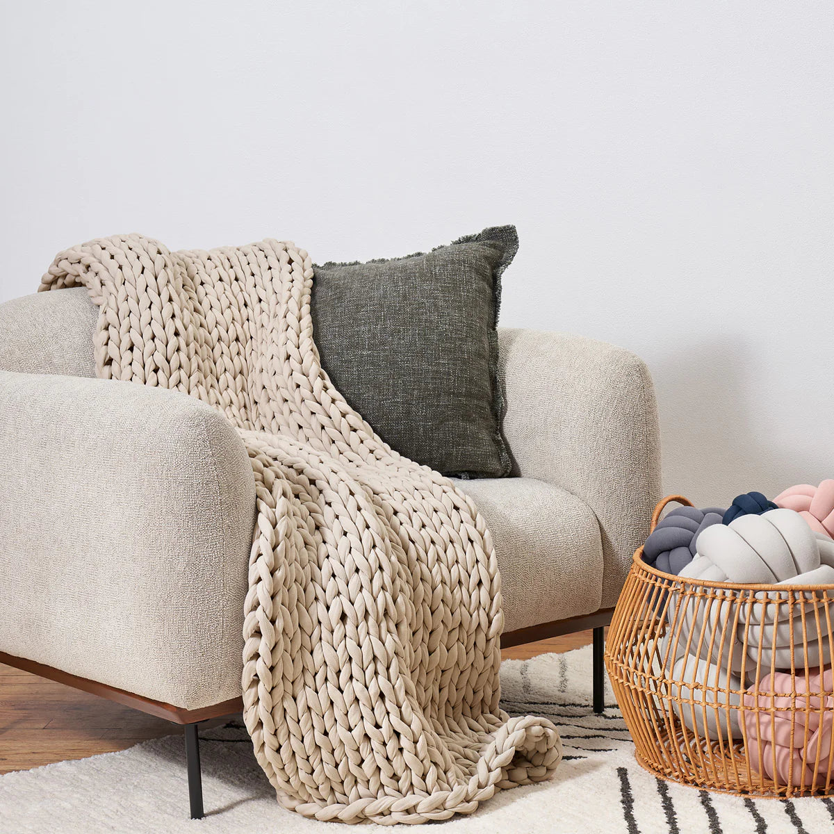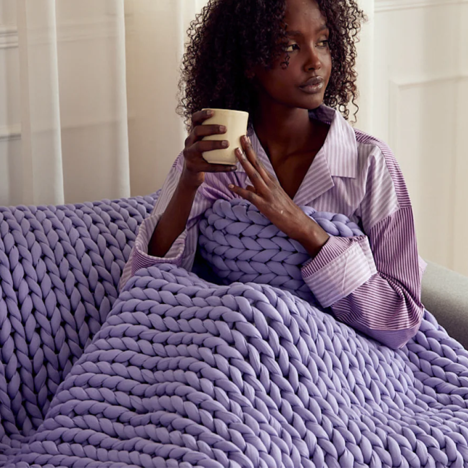 La Cotton Napper est une couverture lestée tricotée conçue pour offrir une sensation douce et enveloppante pendant vos moments de repos.